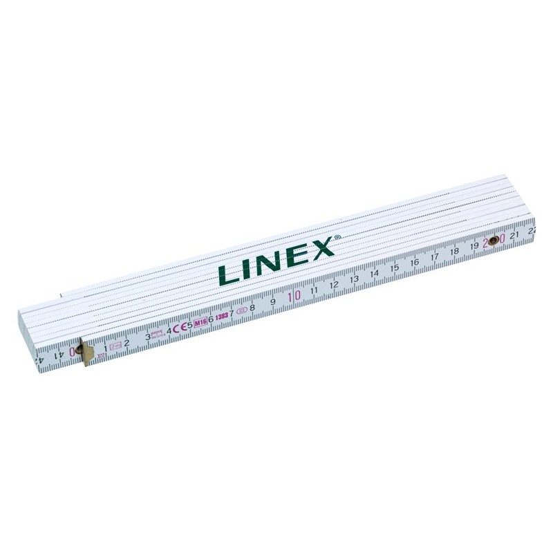 Centimeterstock (ej tum), Linex, i trä, med gradmarkering (vinkel), 2 meter, Vit