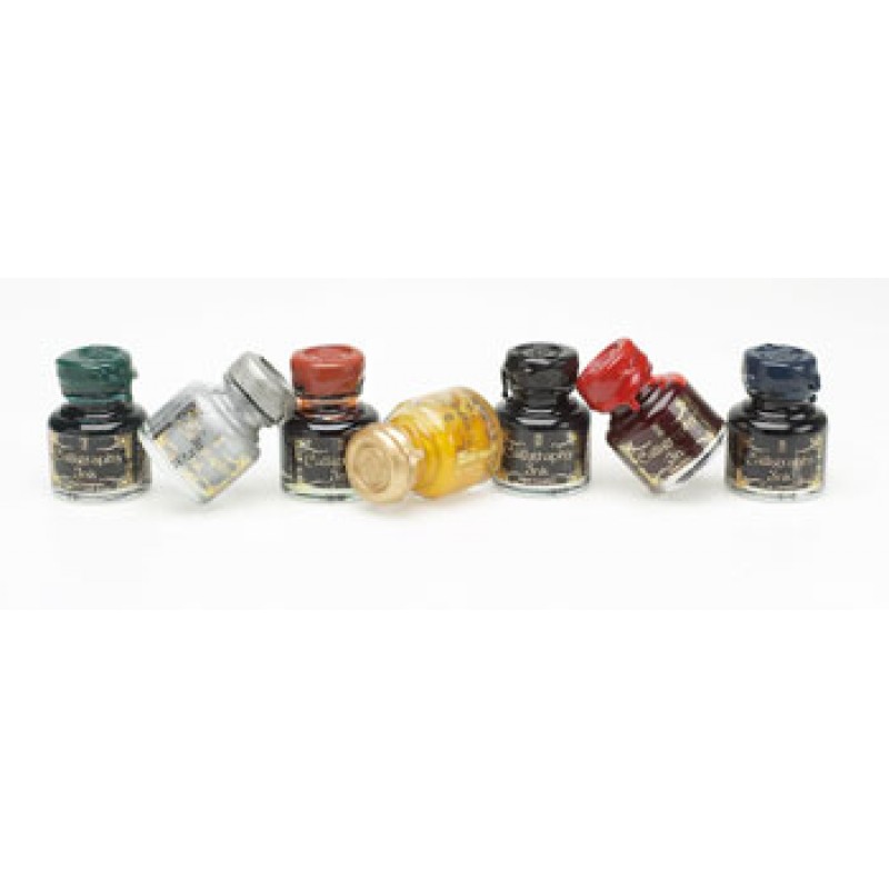 Sortiment med kalligrafibläck i sex olika färger som passar utmärkt till kalligrafipennor.