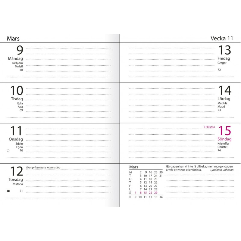 - Fickkalender med veckouppslag